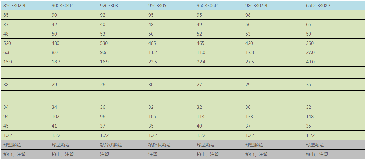 產品特點:極佳的耐水解性,優秀的低溫柔韌性,抗霉菌,耐老化,良好的加工成型性能。